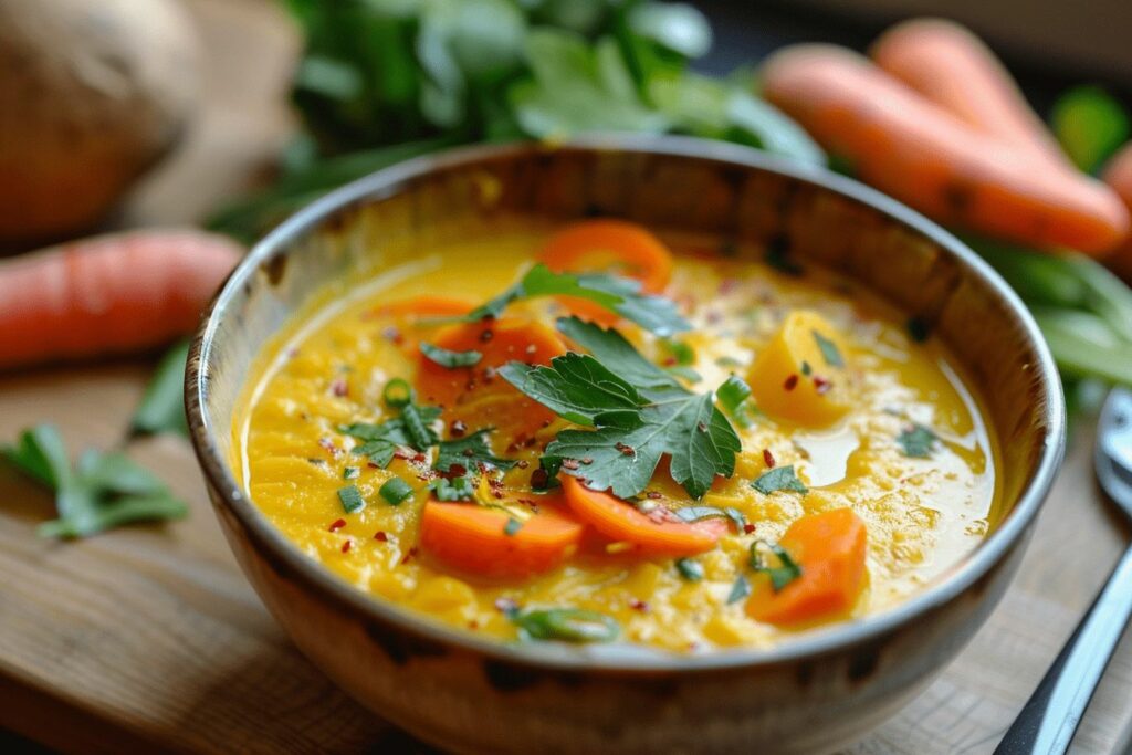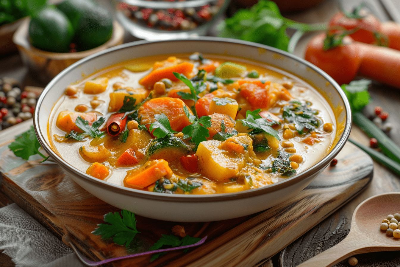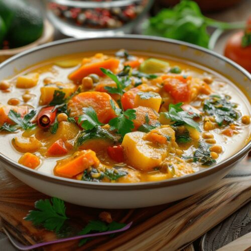 Cette recette de curry de légumes est réconfortante et savoureuse, idéale pour un repas nutritif et équilibré. Préparée avec des légumes variés, du lait de coco crémeux et un mélange d’épices parfumées, elle offre une explosion de saveurs à chaque bouchée.